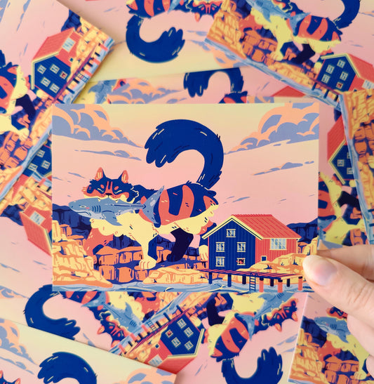 Catch Of The Day Cat Waterproof Matte Vinyl Sticker