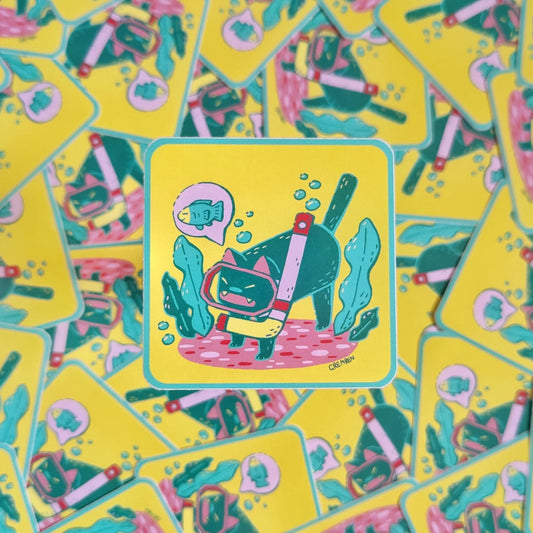 Scuba Cat Waterproof Matte Vinyl Sticker