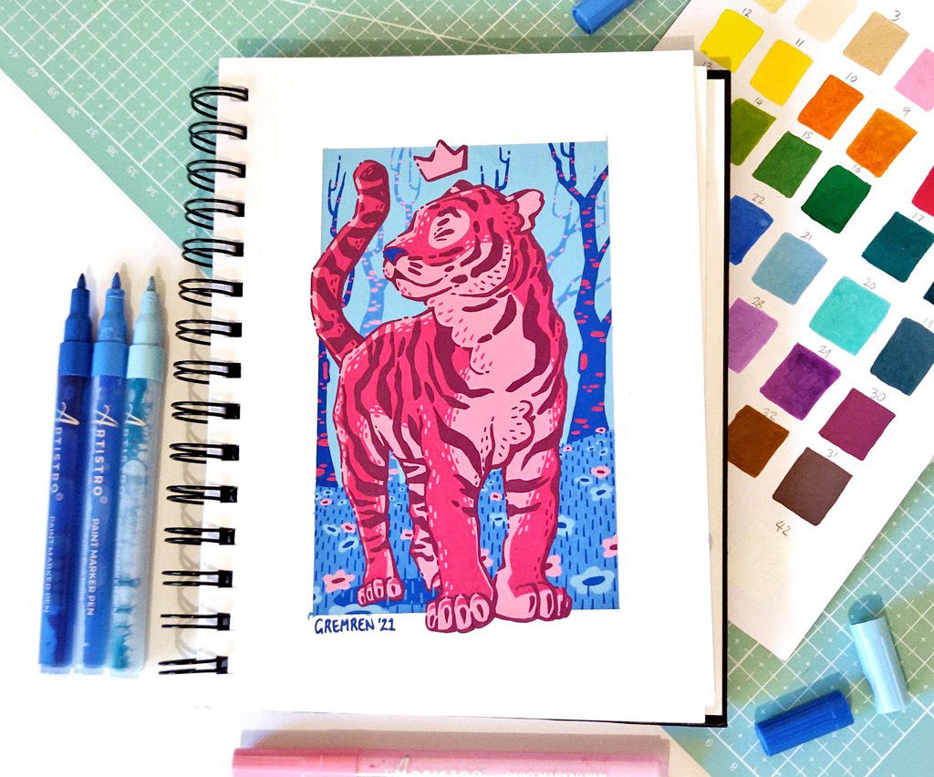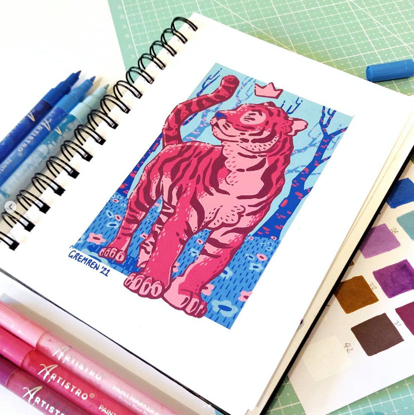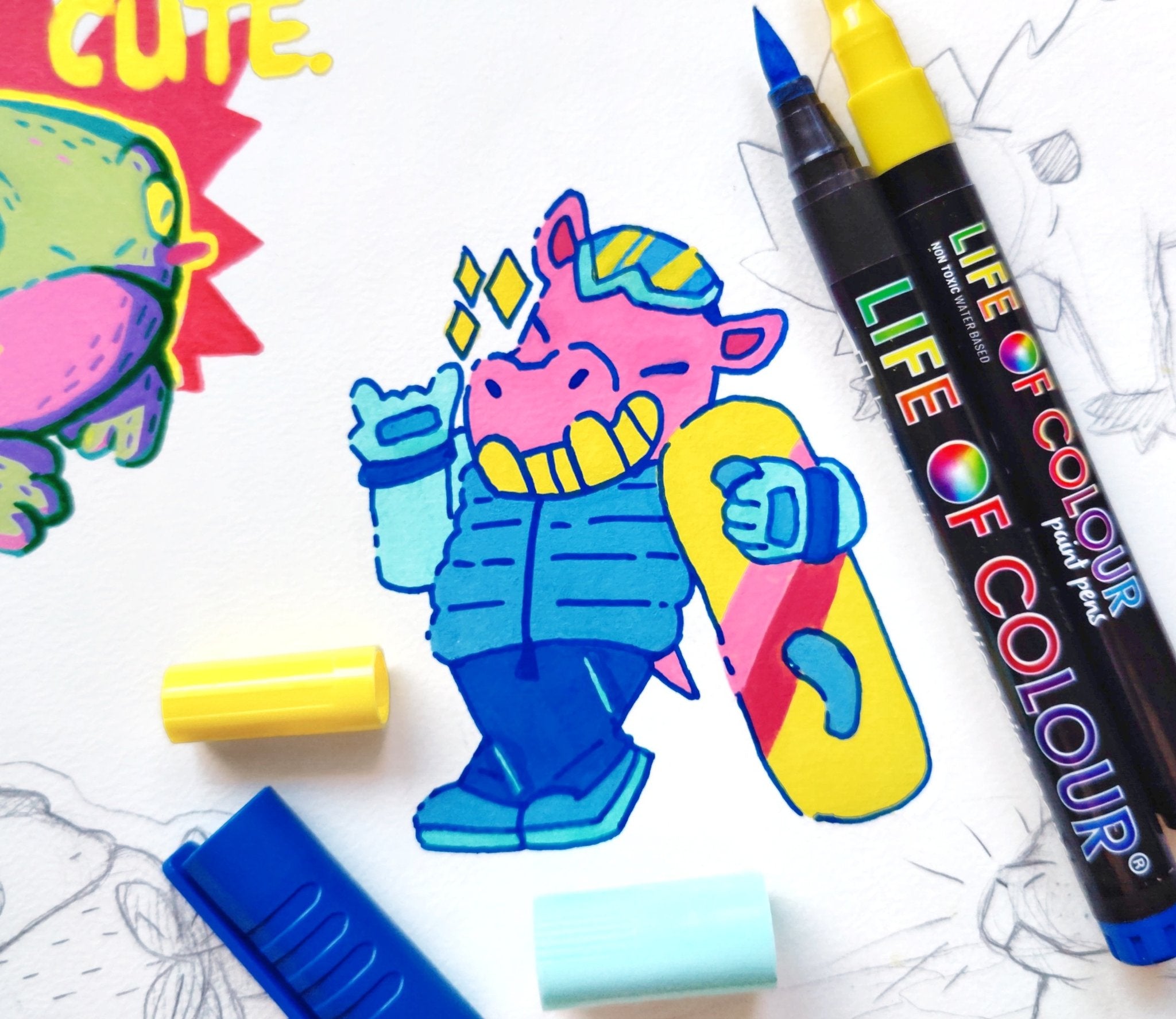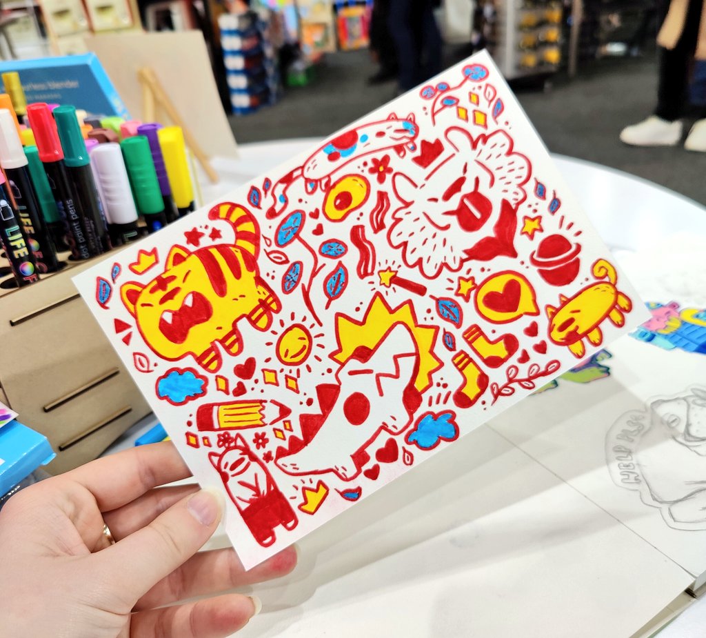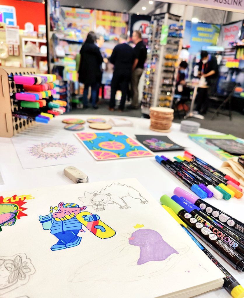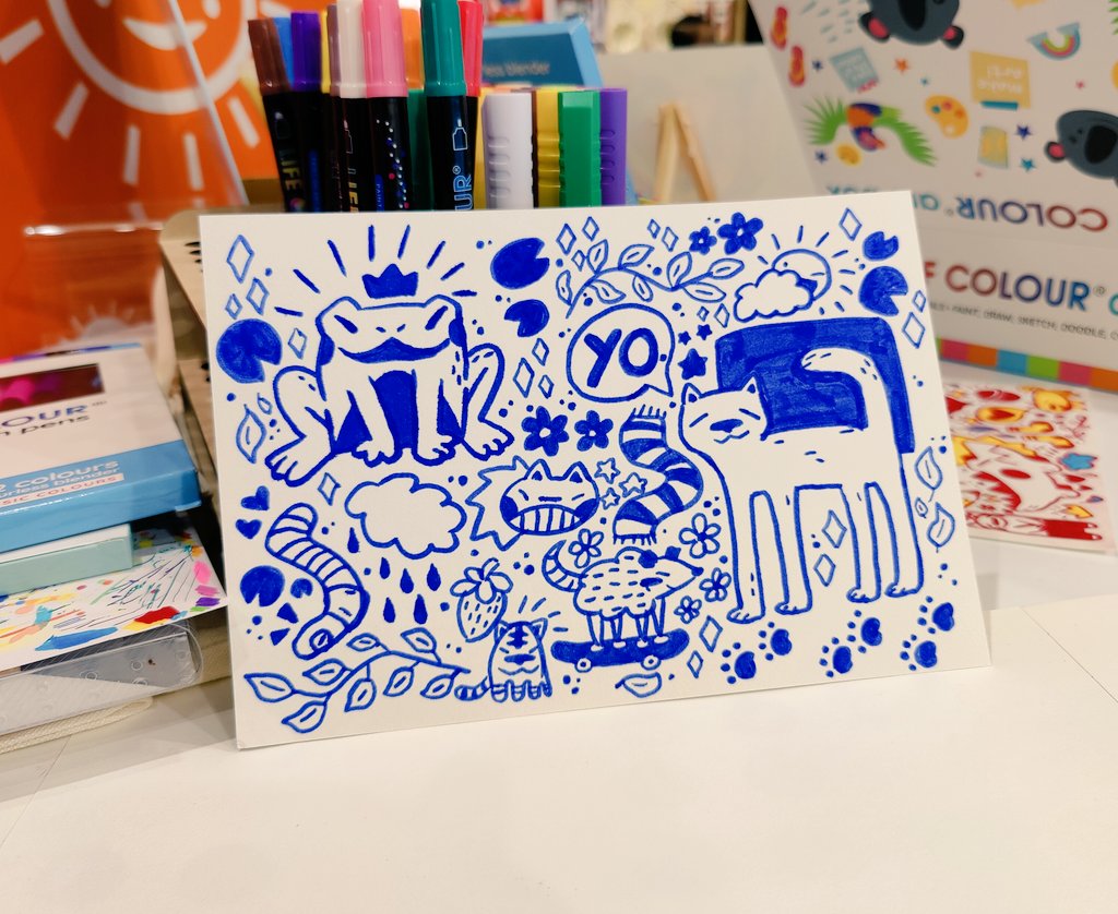 An in-person collaboration, where I was tasked with demo'ing Life Of Colours art supplies at the 2022 Reed Gift Fair. This involved me drawing for several hours over four days, using a variety of supplies, including paint pens, gel pens, brush pens, and gouache sticks, among others.
