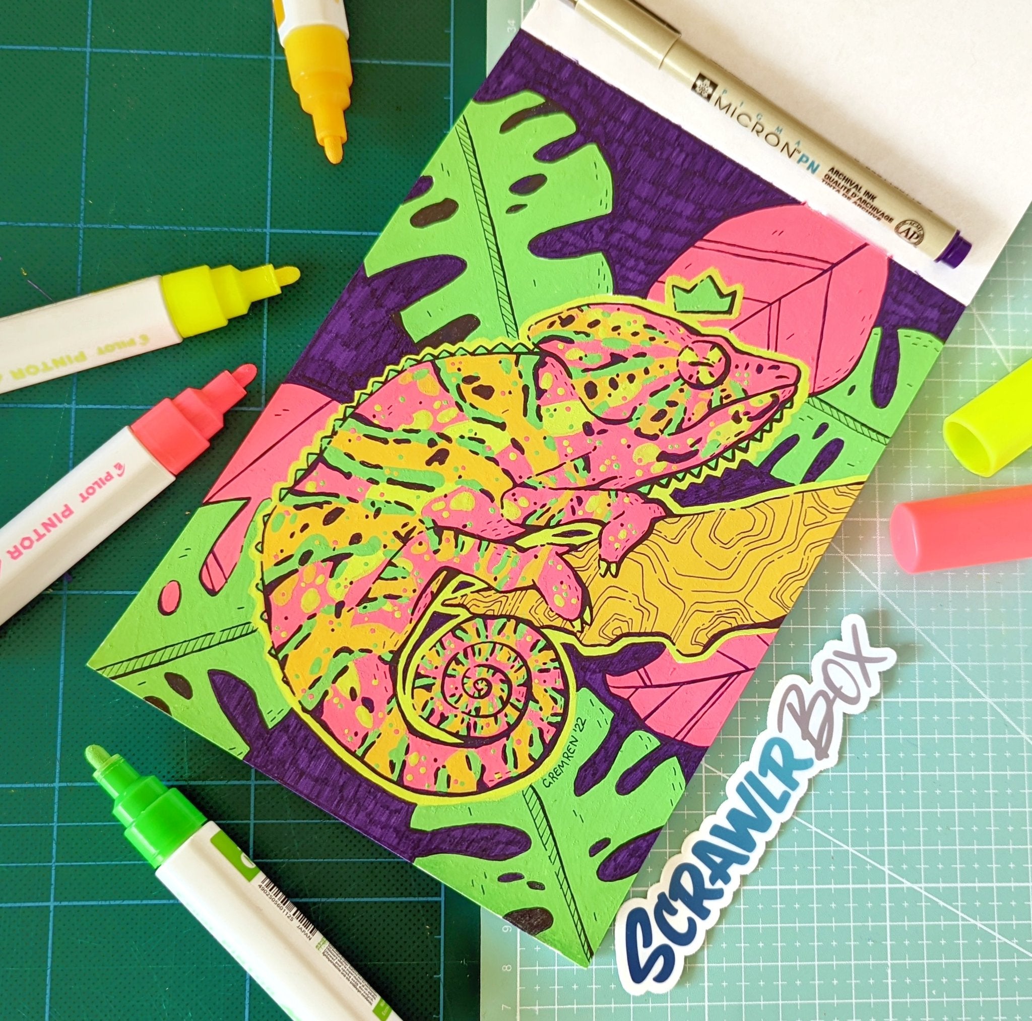 A collaboration which involved me making exclusive content for a monthly art subscription box, using the materials supplied in that specific months box. Another requirement was to provide both visual and written content for the "ScrawlrZine", showing examples of my work, and filling out interview questions to give Scrawlrbox customers an insight into my creative process.