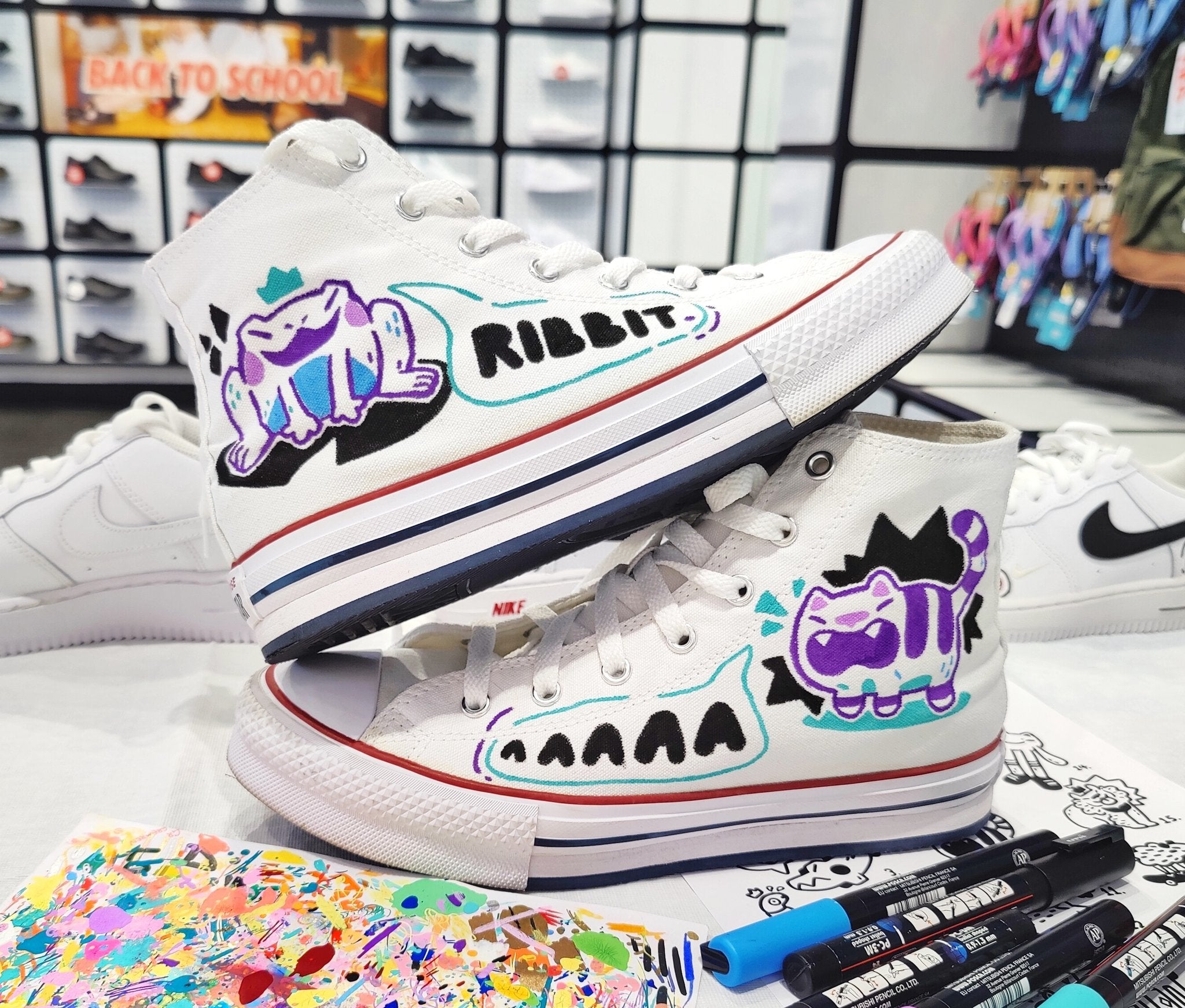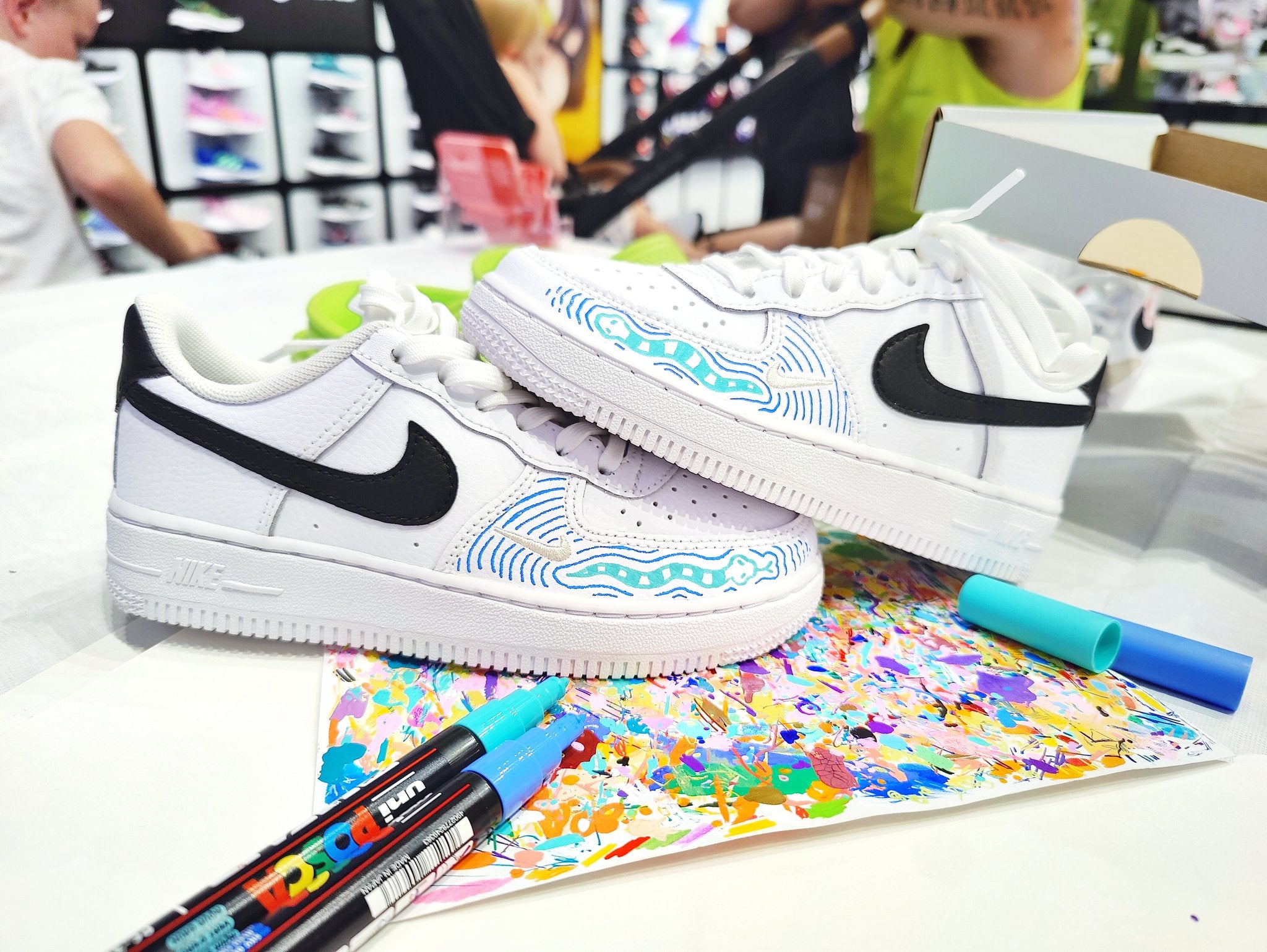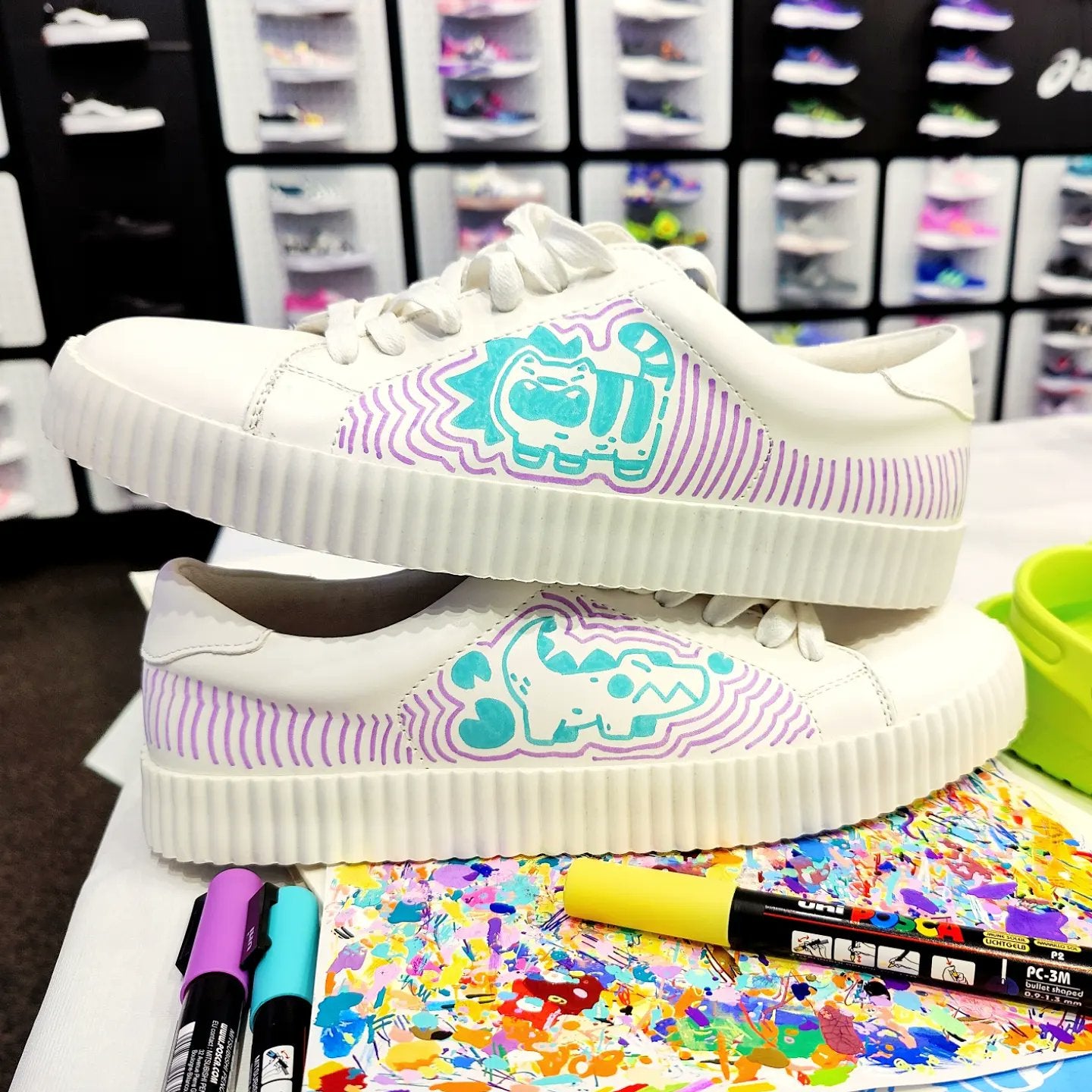 Set in three The TRYBE stores (Weribee, Highpoint, and Fountain Gate), the brief for this collaboration was tooffer live in-store shoe customisations to walk-in customers. A set "flash sheet" was provided for inspiration, but a lot of creative liberties were taken when discussing designs between the customers and artist.