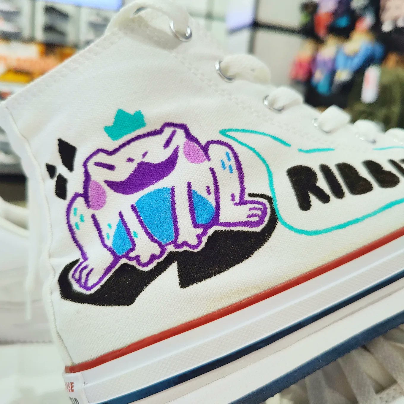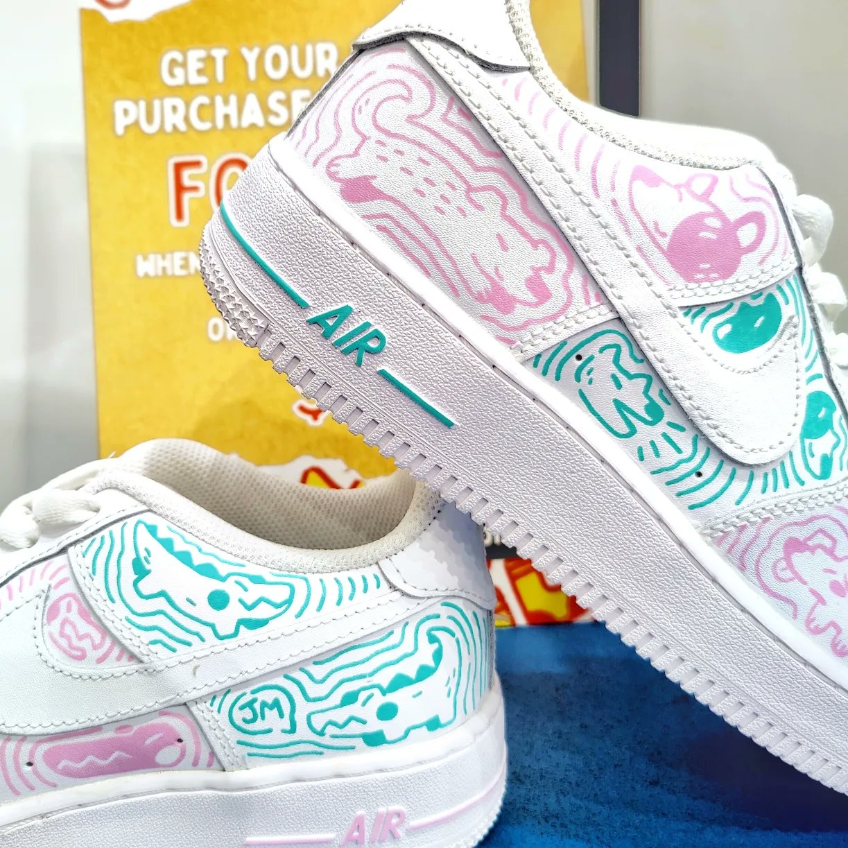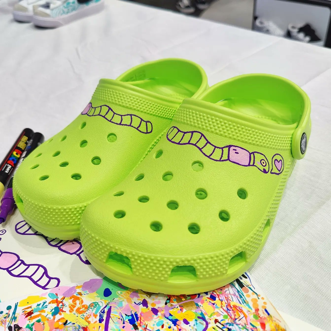 Set in three The TRYBE stores (Weribee, Highpoint, and Fountain Gate), the brief for this collaboration was tooffer live in-store shoe customisations to walk-in customers. A set "flash sheet" was provided for inspiration, but a lot of creative liberties were taken when discussing designs between the customers and artist.