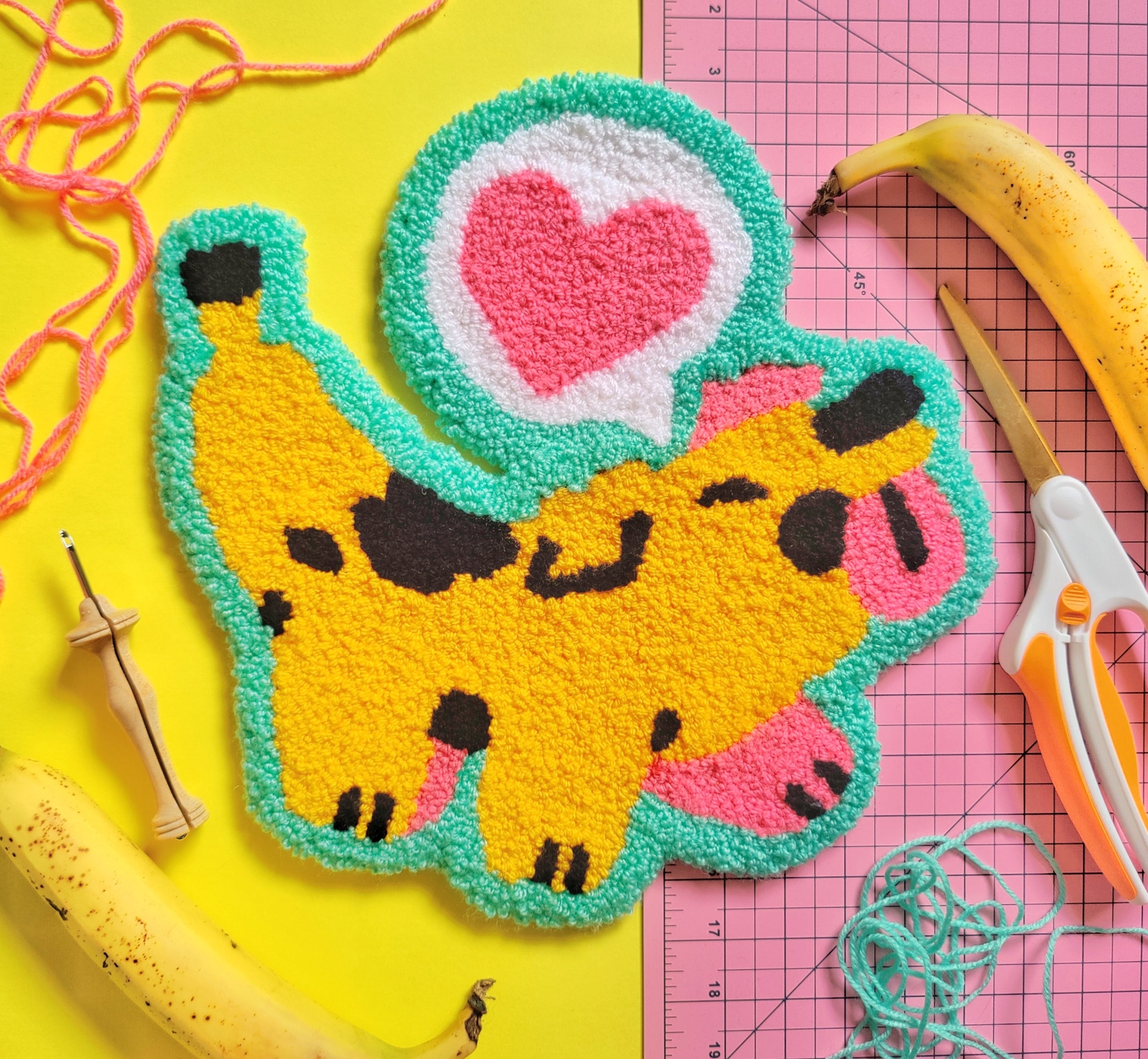 Working with Australian Bananas, the brief was to create a 30 second Instagram Reel, showing how bananas gave people energy to do what they love. In my case, the premise was that bananas gave me the fuel to create a punch needle design. The banana dog was a custom design for this project.