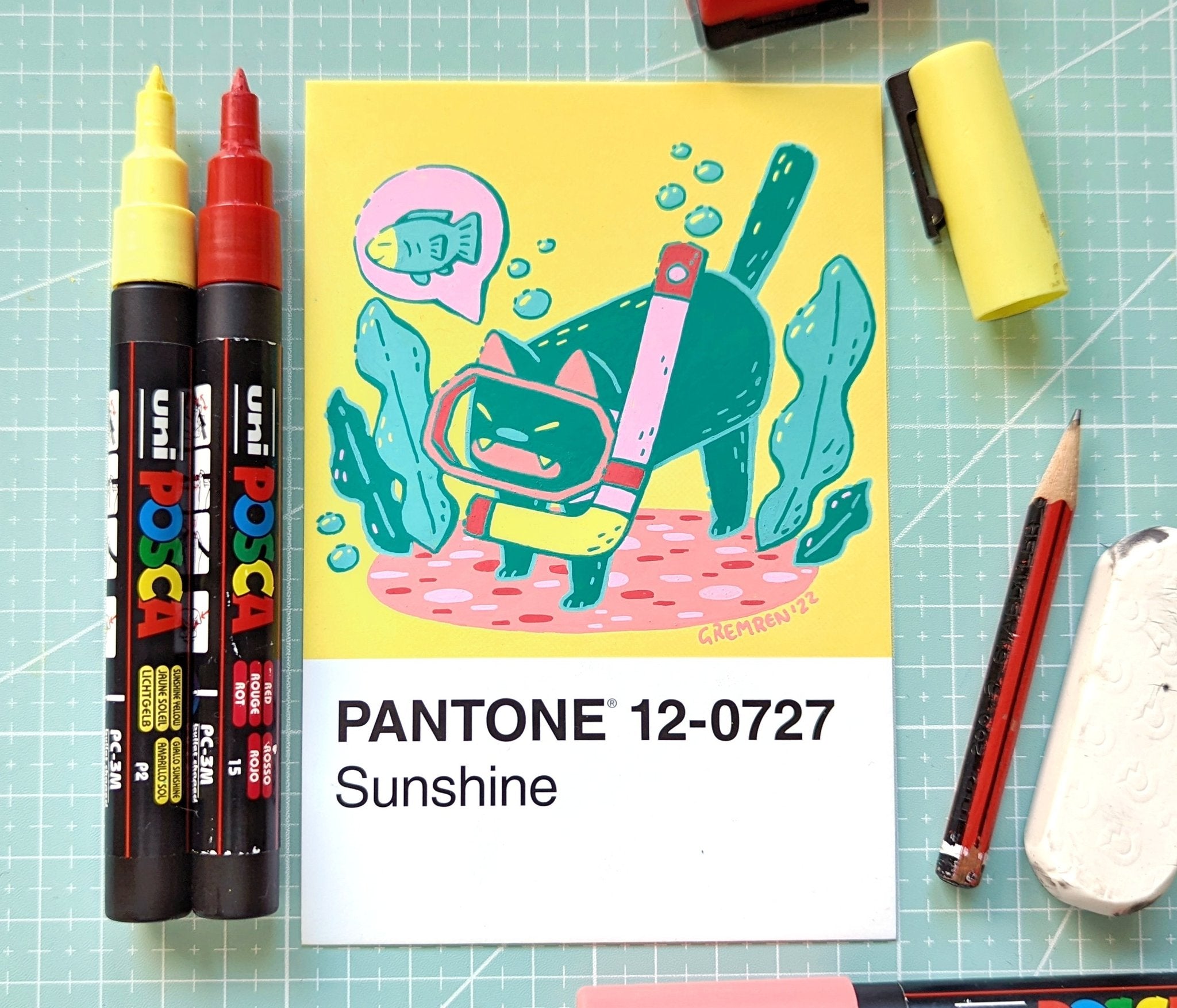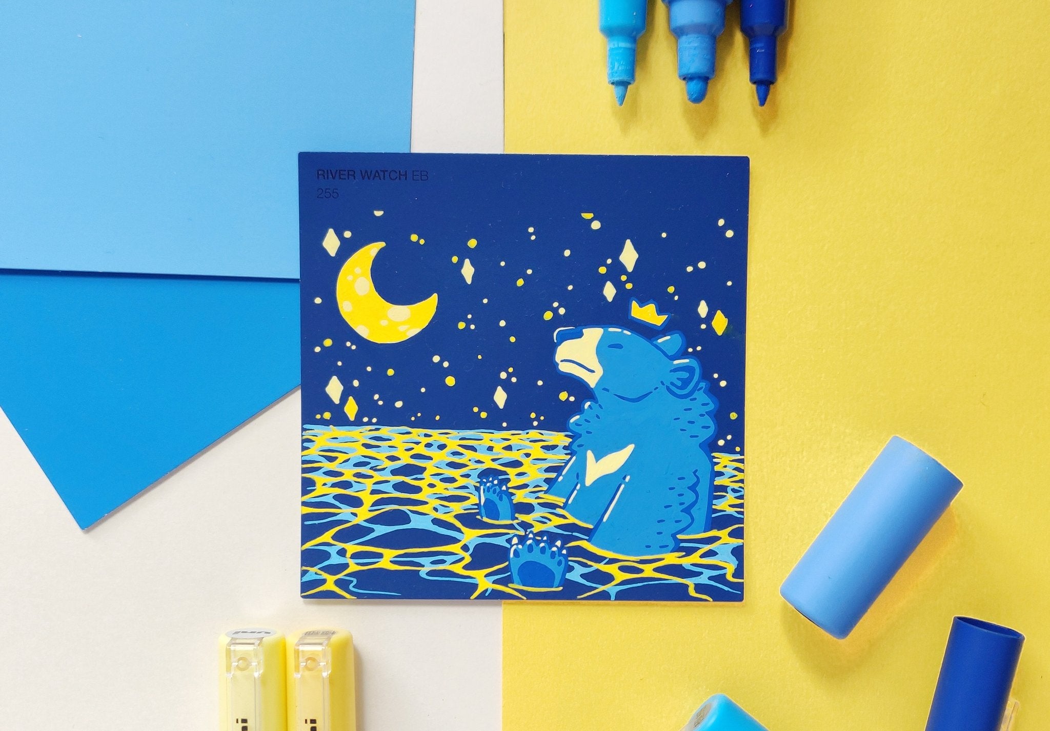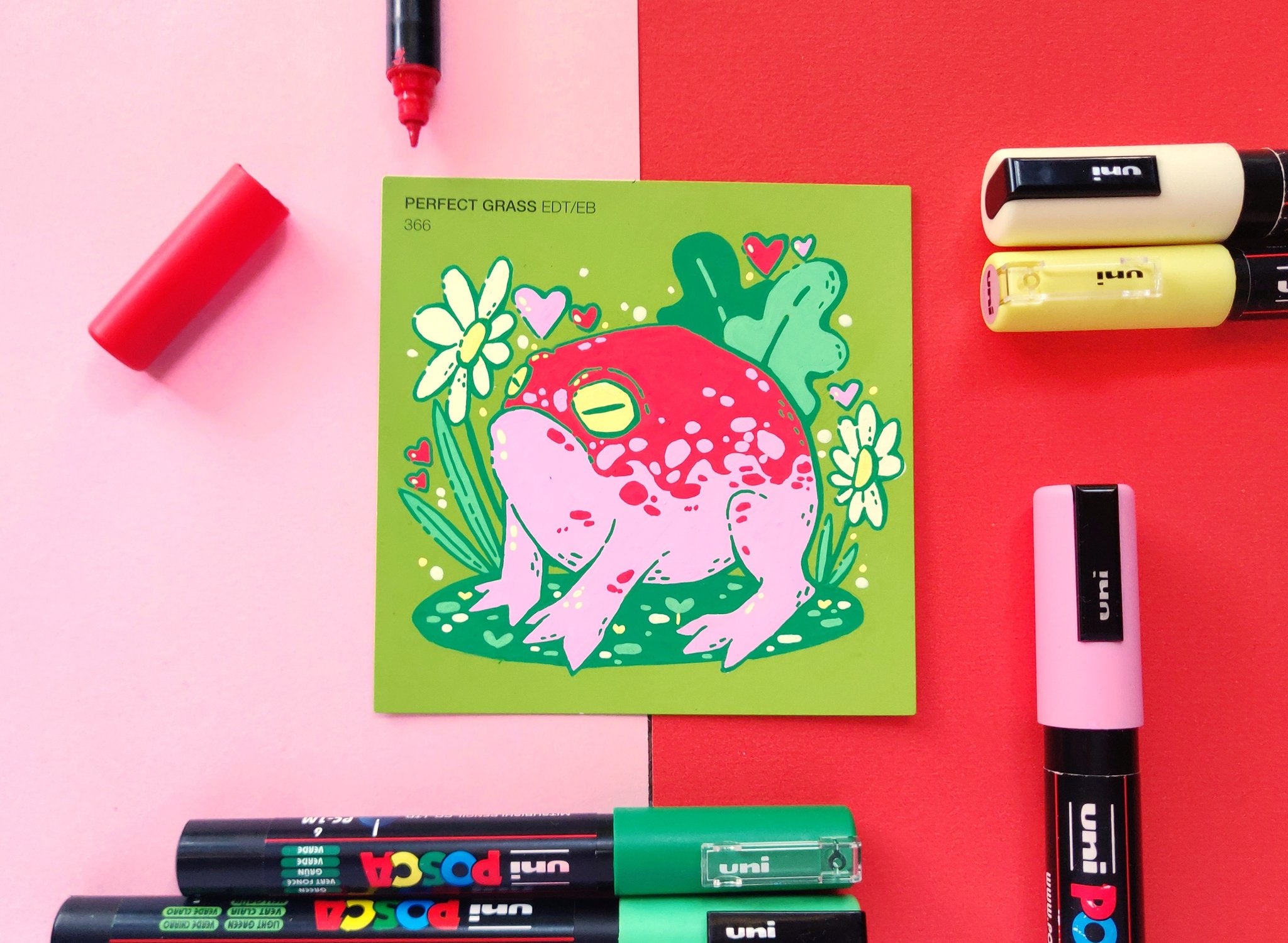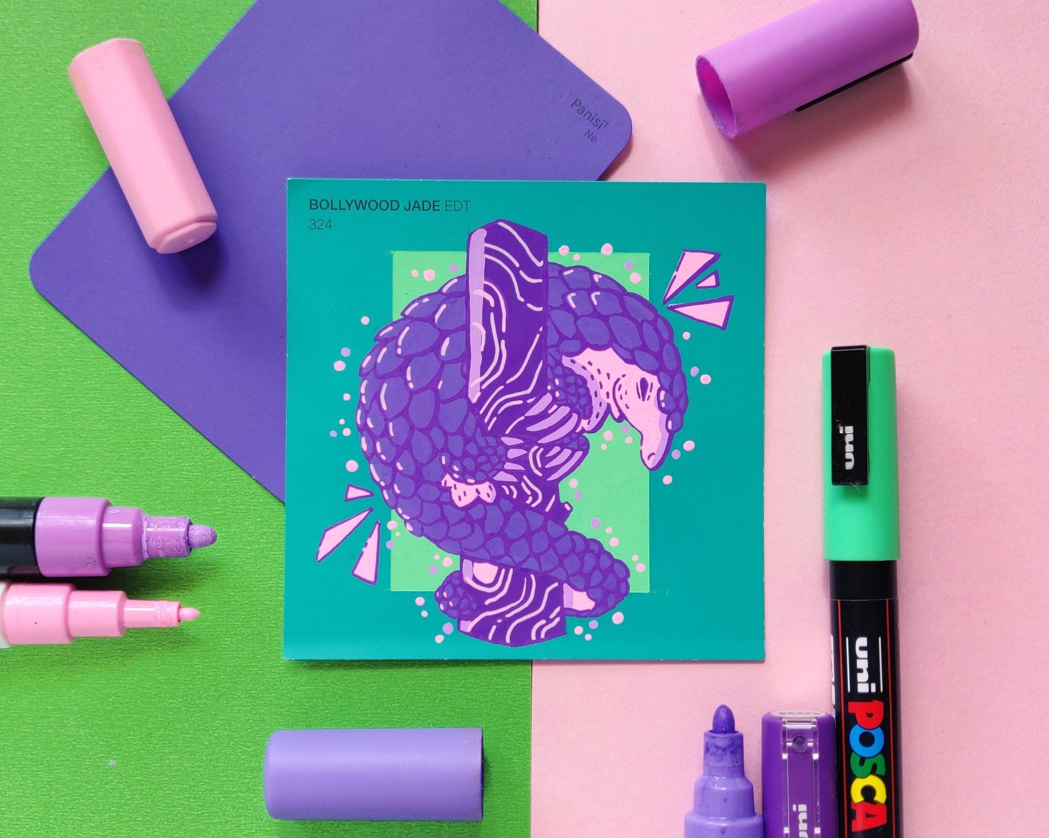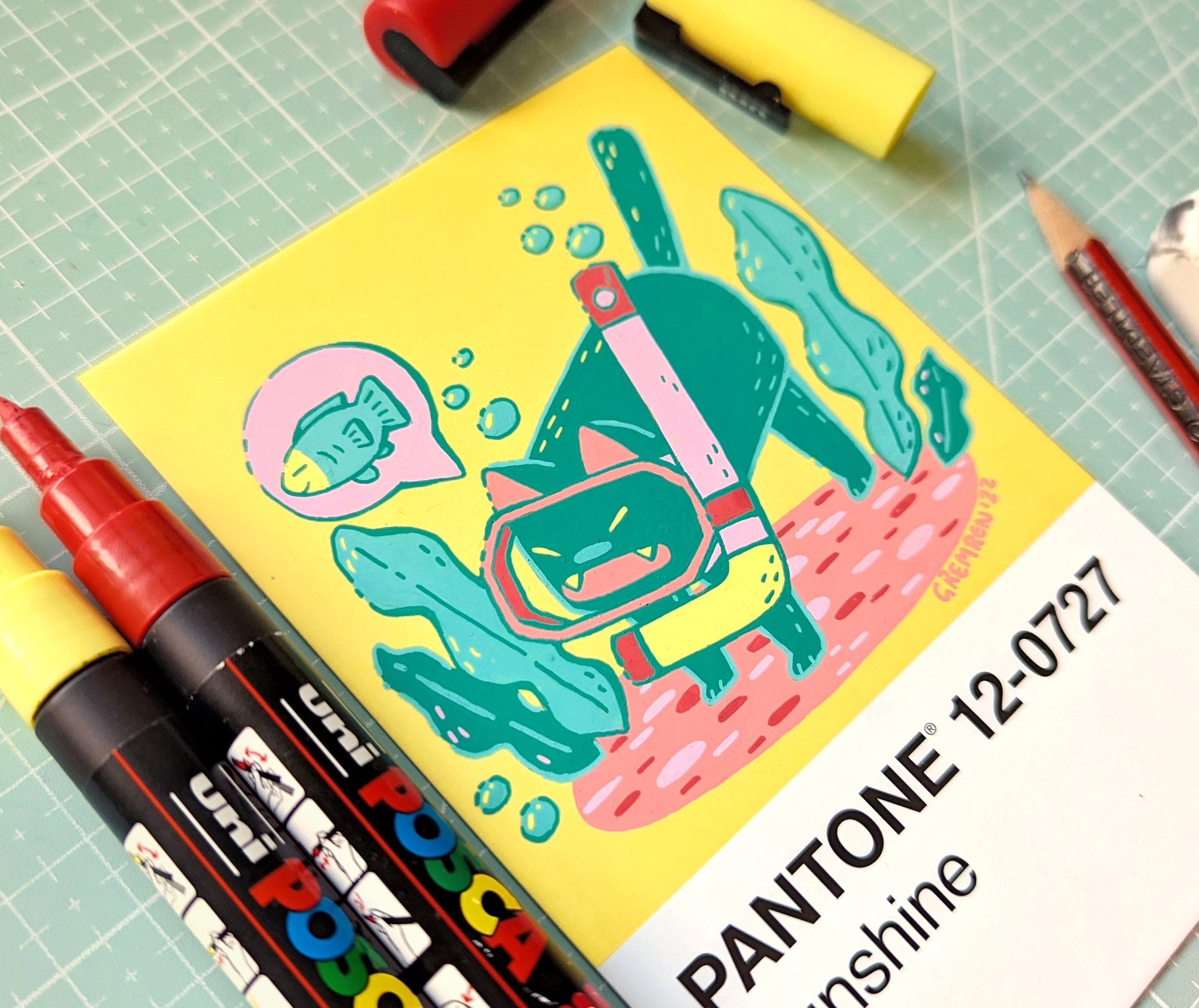 In an effort to find an affordable and eye-catching canvas, I began experimenting with paint pens on paint swatch cards. Due to the pre-determined main colour and small size, it gave me some really interesting parameters to creatively wrestle with.