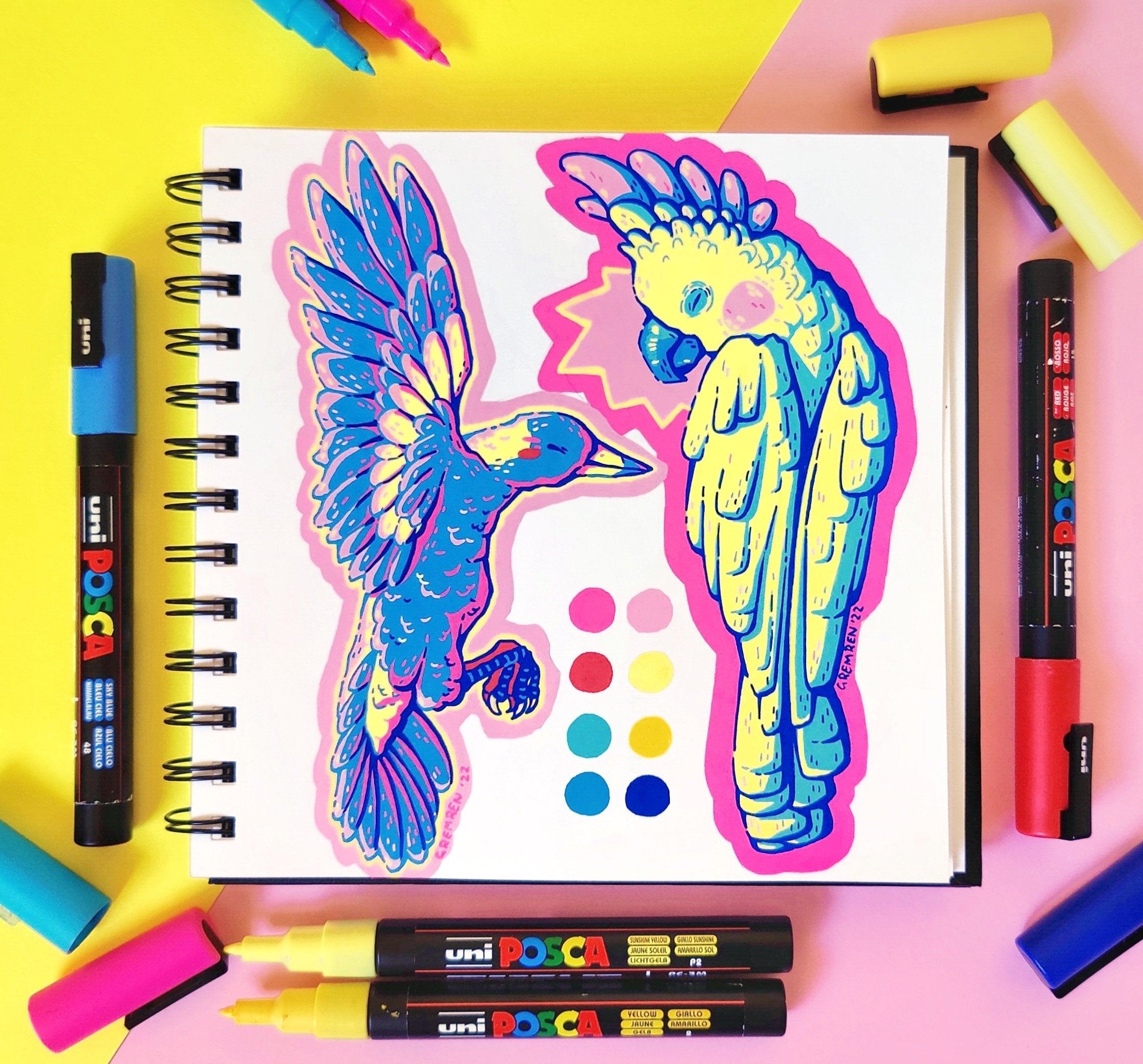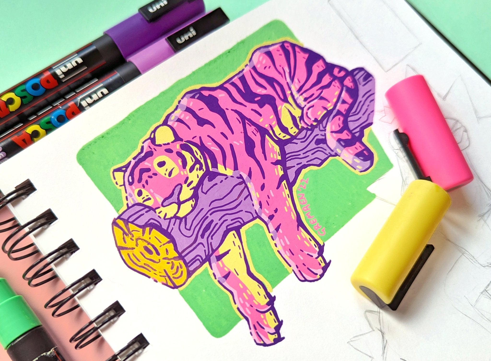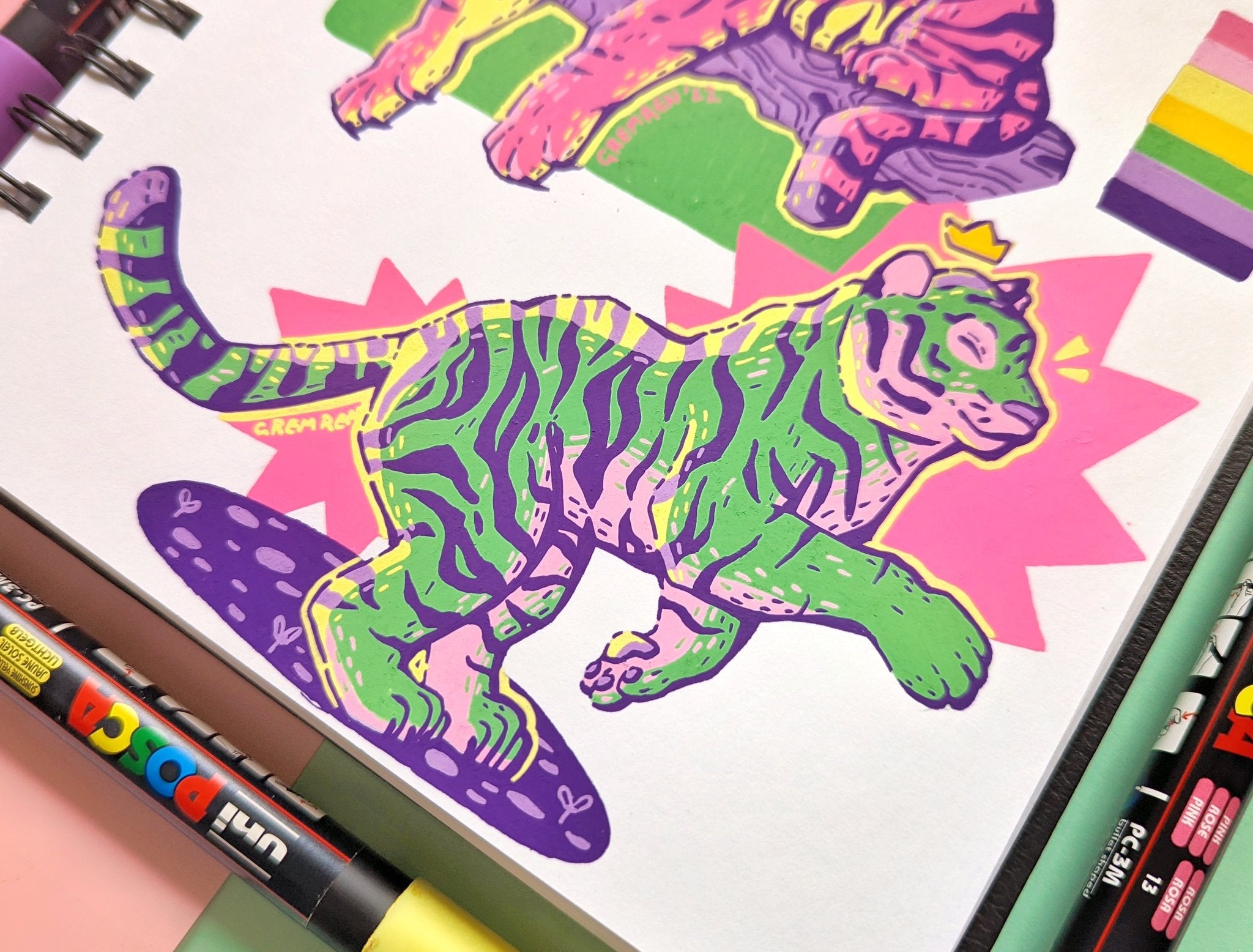 Fun creative exercises in my standard sketchbook. I always get so much pleasure from the bold and vibrant finish of paint pens, so I have no shortage of work made using this medium :)