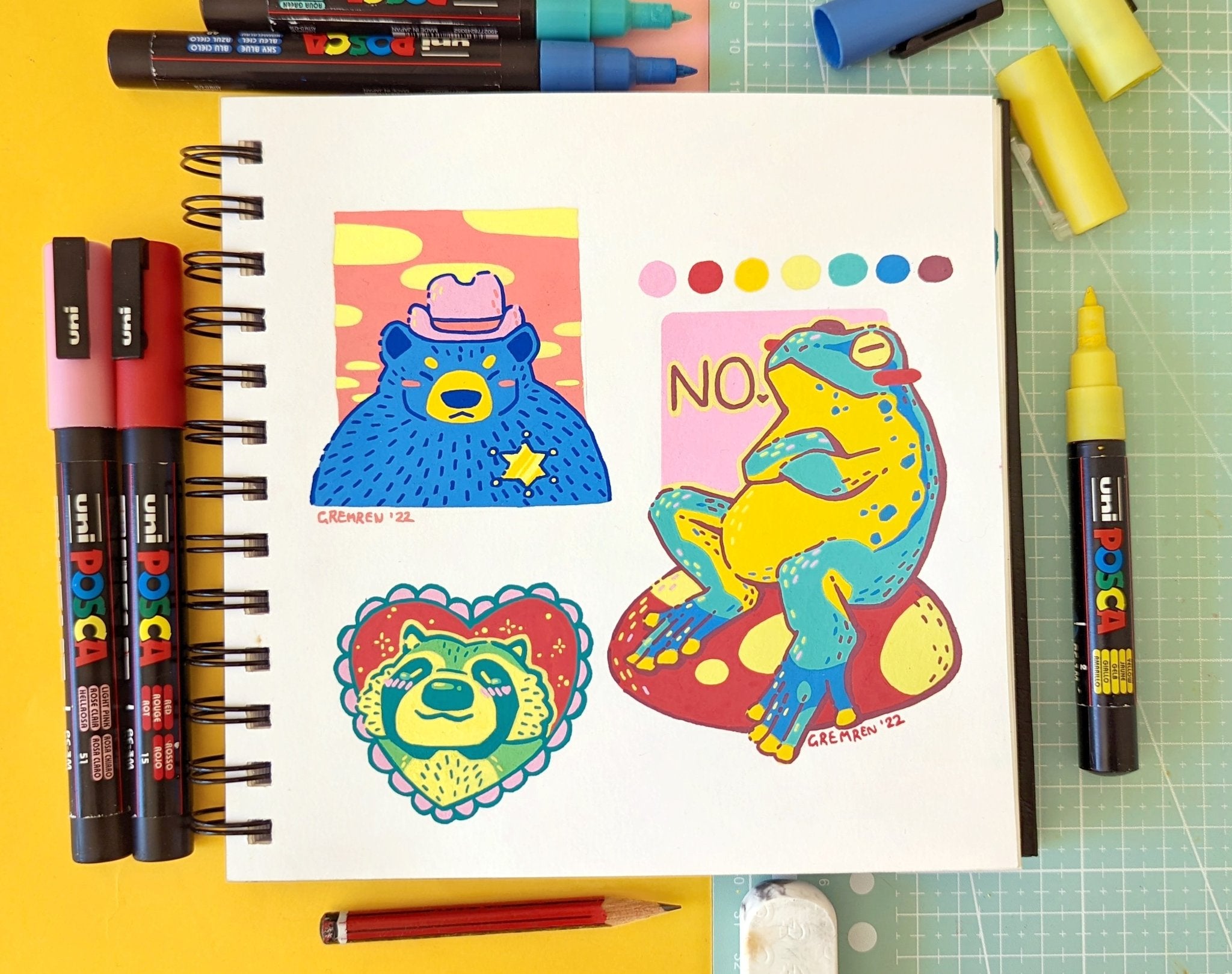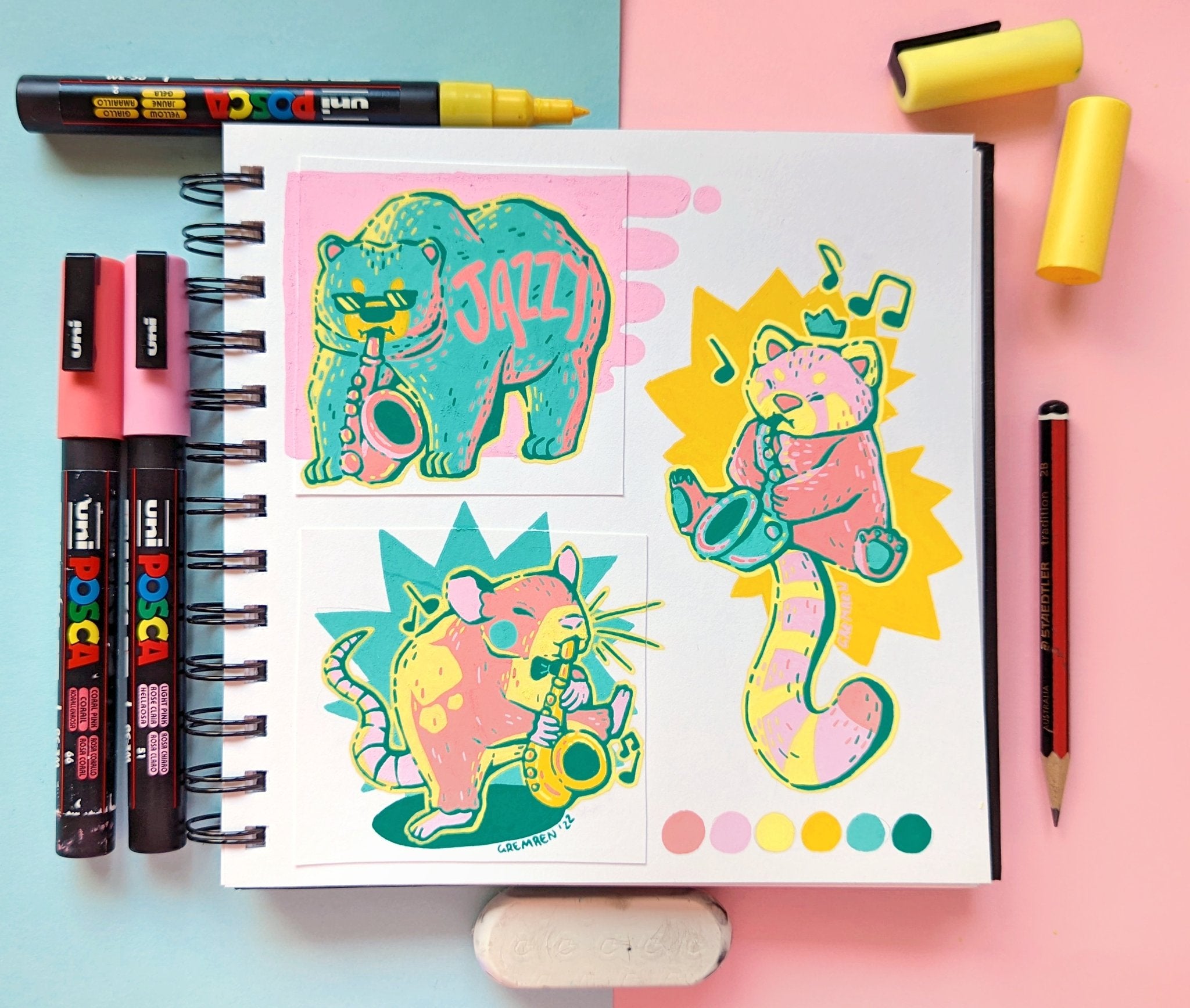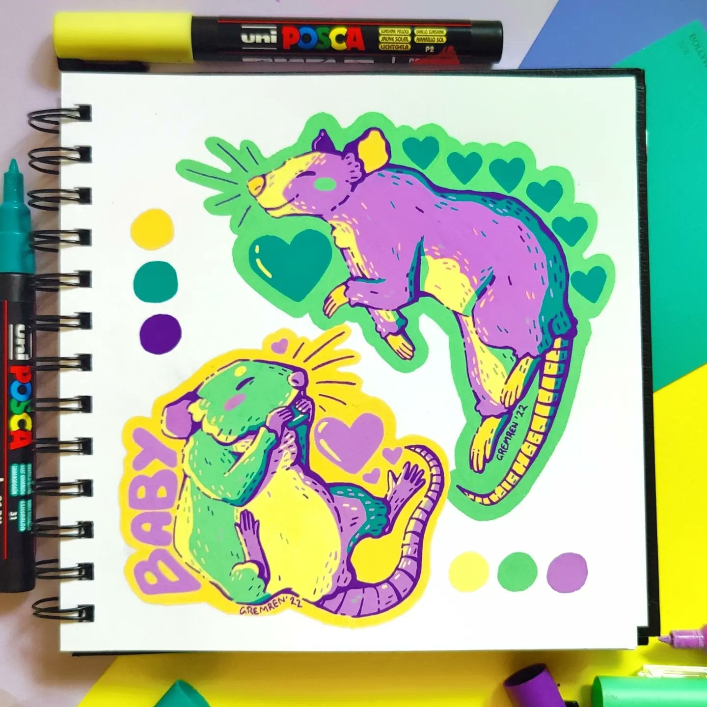 Fun creative exercises in my standard sketchbook. I always get so much pleasure from the bold and vibrant finish of paint pens, so I have no shortage of work made using this medium :)