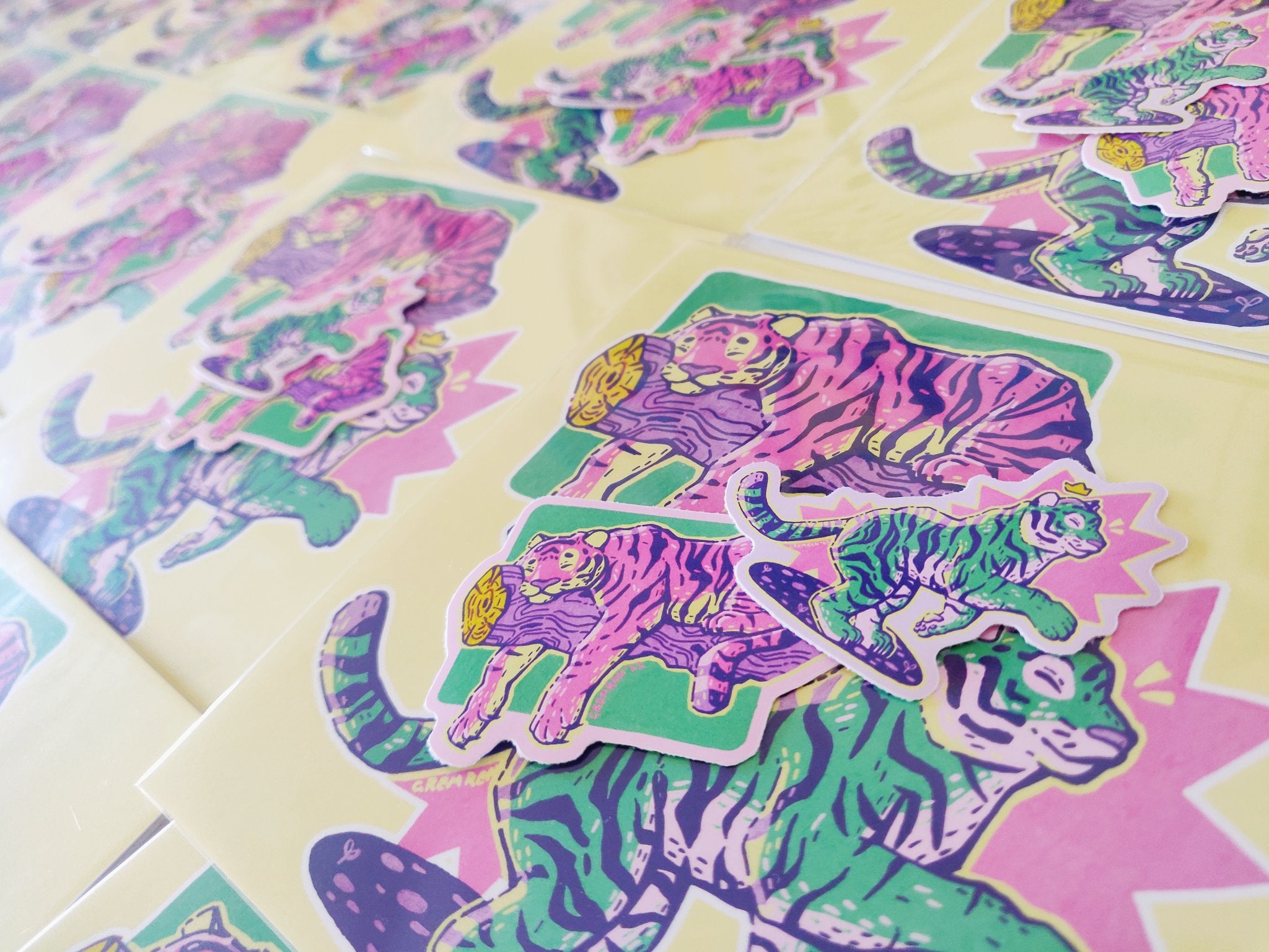 Work created with the express purpose of fulfilling a monthly mail subscription on Patreon. These traditional illustrations would have to be repurposed as both a square postcard print, and two individual vinyl stickers, so those deliverables were always considered during the creative process.
