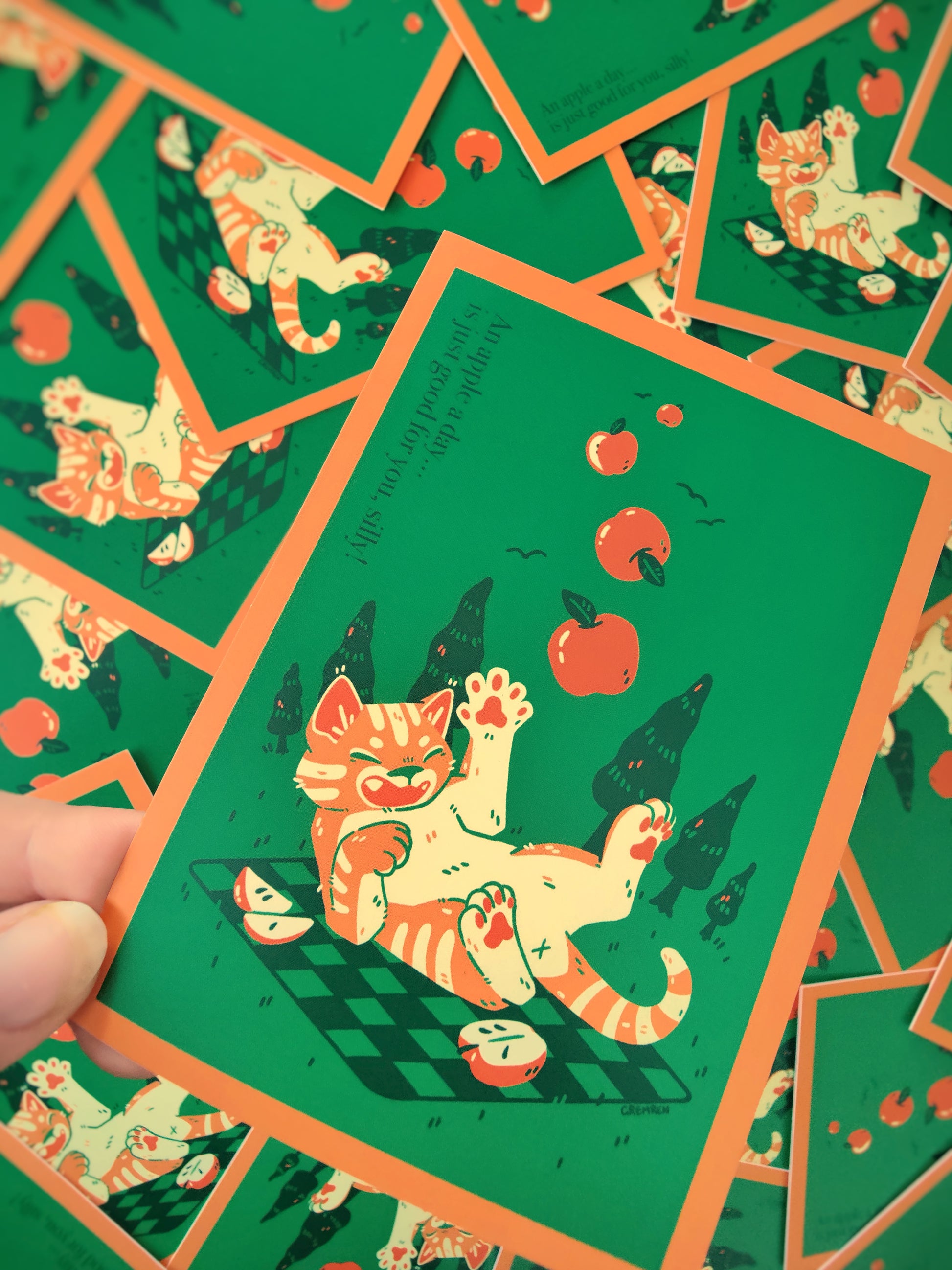 Apple A Day Cat A6 Mini Print - ONE LEFT
