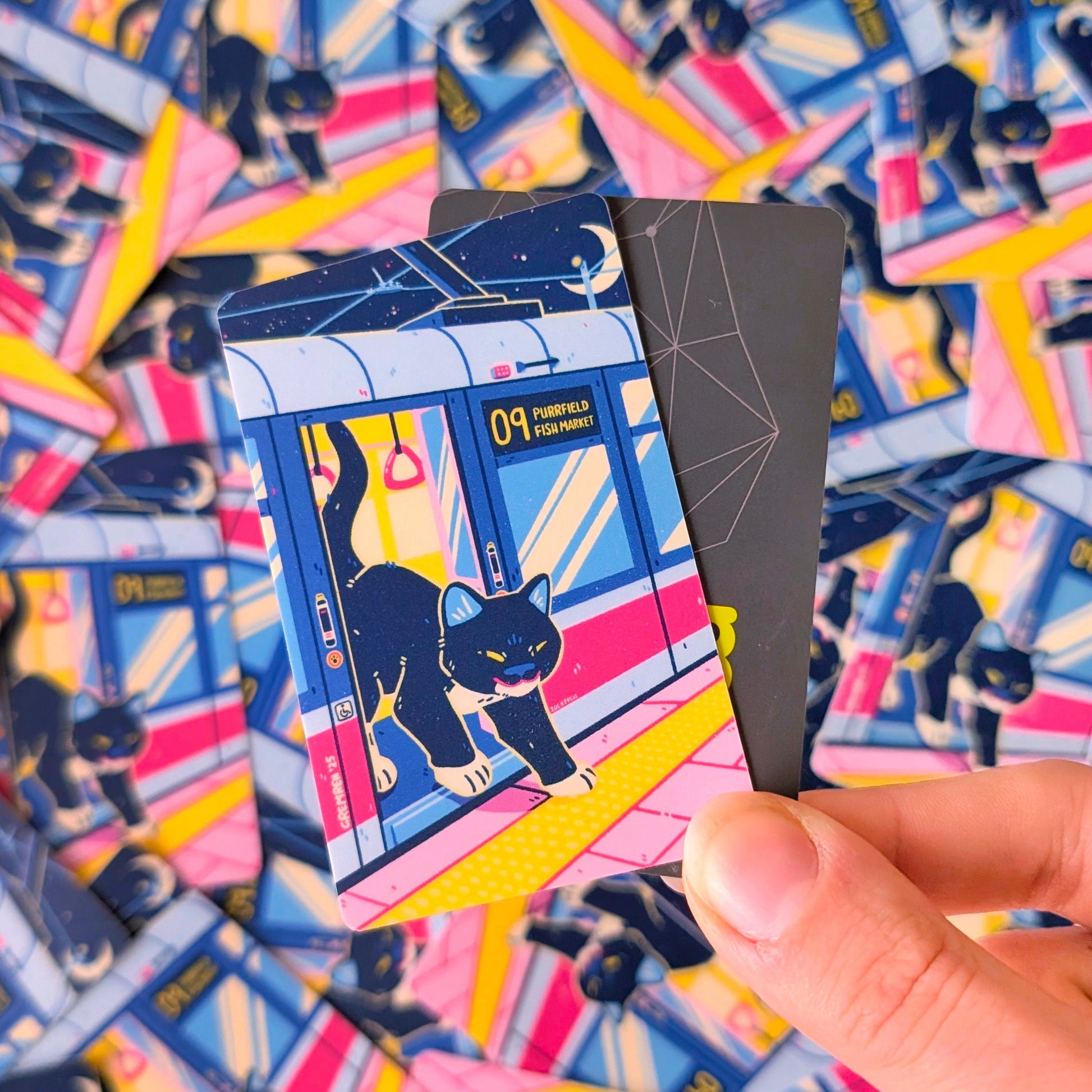 Midnight Treat Cat Waterproof Matte Vinyl Sticker - Travel Card Compatible