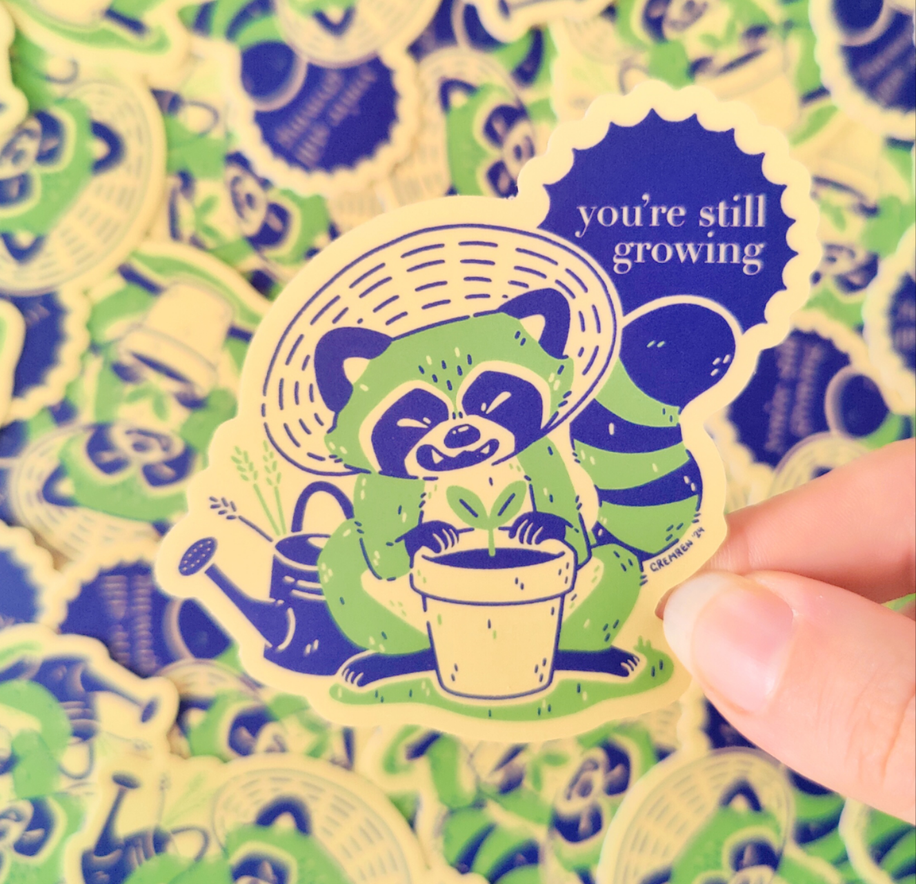 Still Growing Raccoon Waterproof Matte Vinyl Sticker